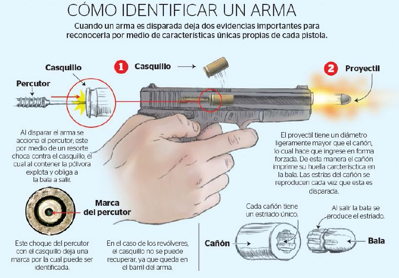 “Con la huella balística de cada arma, es decir con las señas que quedan después de que esta se dispara, podemos establecer si ya fue utilizada en hechos anteriores”, explicó.
