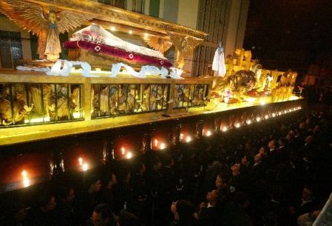 La alegoría de la procesión simbolizaba la ornamentación que ese templo expuso en la década de 1990. A lo largo del anda se recreó el Coliseo Romano, cruces y lienzos ensangrentados, y figuras que representaron a los primeros cristianos que fueron perseguidos. Todo en colores café y ocre.
