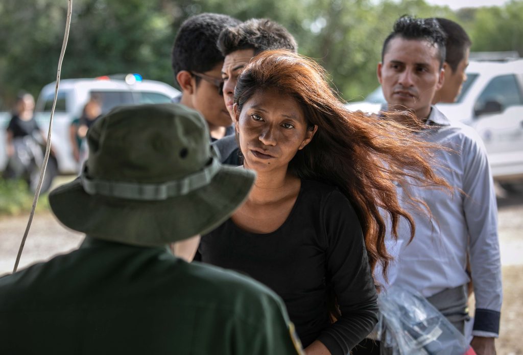 Mujer inmigrante embarazada que buscaba asilo político espera ser entrevistada por agentes de la Patrulla Fronteriza estadounidense luego de cruzar Río Bravo, México. Foto Prensa Libre: AFP.