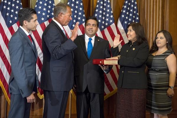Norma Torres toma juramento con el presidente de la Cámara de Representantes, John Boehner. (Foto Prensa Libre: AP)