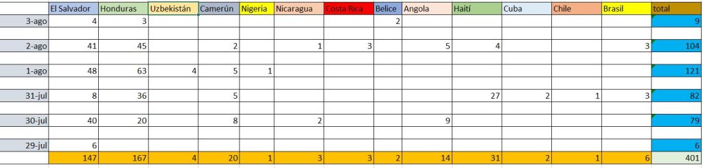 - El 1 de agosto fue interceptado un grupo de 32 migrantes en el kilómetro 198 de la ruta Interamericana, Cuatro Caminos, Totonicapán.