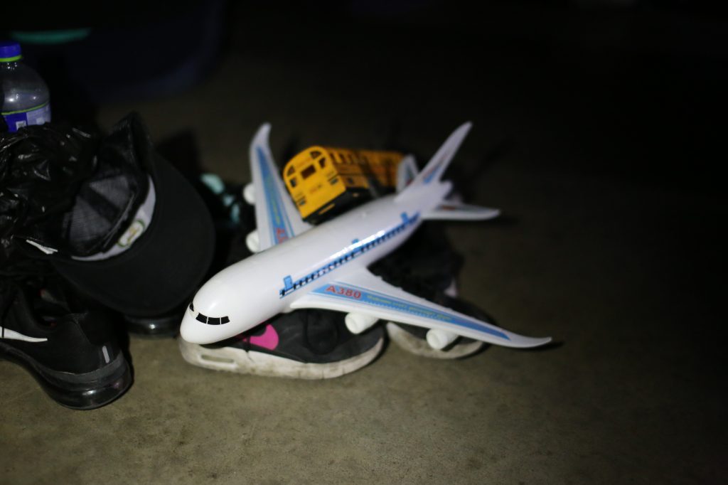 Estos juguetes son parte del equipaje de un niño hondureño que pasó la noche junto a sus padres en un albergue de Esquipulas, el menor sueña con llegar a los Estados Unidos. Prensa Libre/Carlos Hernández