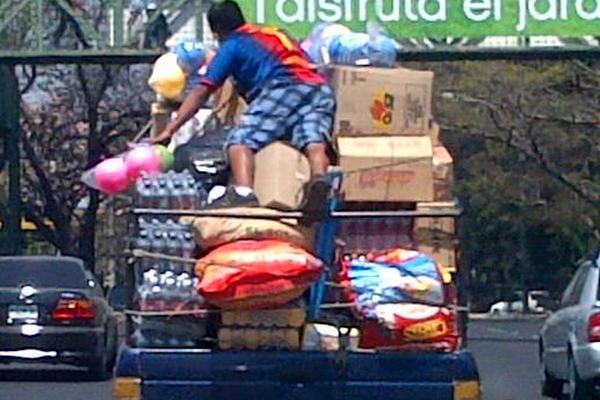 Un automovilista tomo la fotografía que aparece arriba, muestra la imprudencia de una persona que viaja sobre cajas y artículos de primera necesidad exponiendo su vida a un accidente.