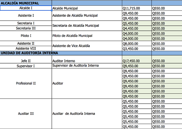 Según los documentos el sueldo del alcalde es de Q11 mil 715, pero durante la administración pasada hubo antecedentes de aumento salarial para el jefe edil.