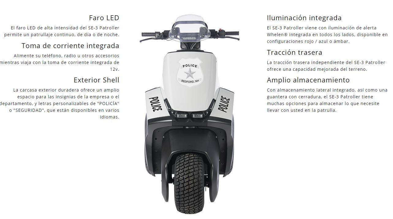 Se trata del SE-3 Patroller, un modelo que aprovecha la fortaleza y calidad de transporte eléctrico personal, cuyo distribuidor internacional es Segway.