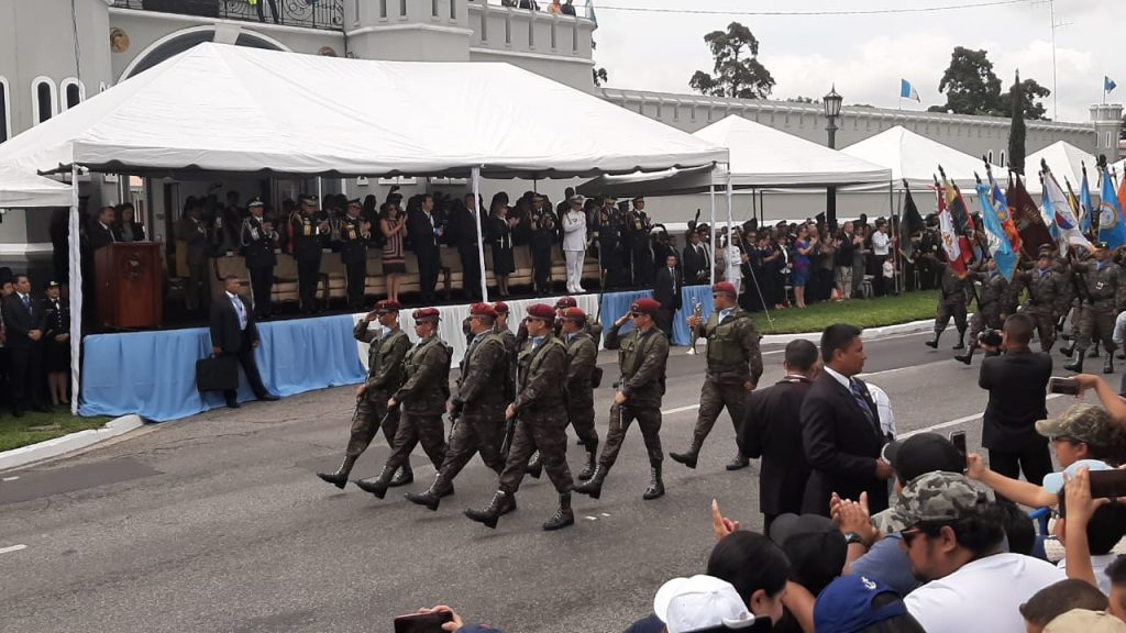 El recorrido también contó con la presencia de elementos del Cuerpo de Bomberos de la Municipalidad de Guatemala, la Policía Nacional Civil y la Policía Municipal de Tránsito de la comuna capitalina. El cortejo tuvo la presencia del alto mando del Ejército y el presiente Jimmy Morales en una tarima instalada frente al Ministerio de la Defensa sobre la Avenida Reforma.