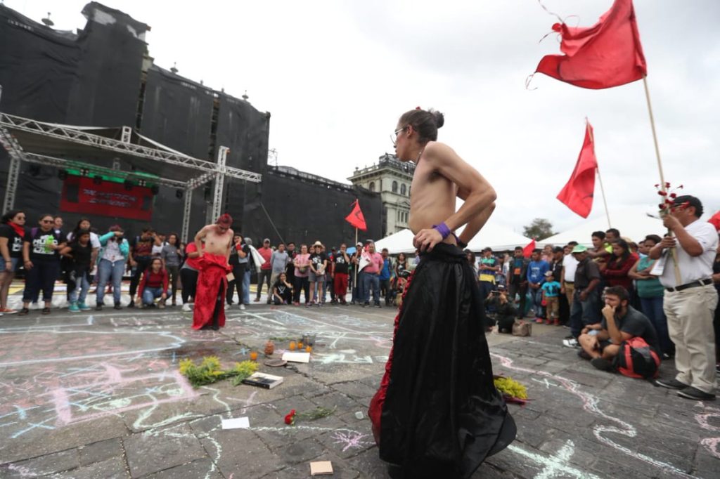 Al finalizar esta marcha, en la Plaza de la Constitución, la Organización de Locas Centroamericanas y del Caribe llevó a cabo un performance. Los artistas dibujaron un mapa de Guatemala y lo marcaron con cruces para representar las 422 masacres cometidas durante el conflicto armado interno, indicó Luis Morales integrante de la agrupación.
