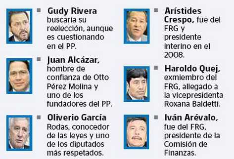 Todos niegan que se postulen para el cargo, pero en las filas oficialistas, e incluso de otras bancadas, se aseguró que la discusión está sujeta a cabildeo. Incluso varios legisladores del Partido Patriota (PP) indicaron que muchos de los problemas de esa bancada han sido porque los legisladores mencionados están en busca de apoyo.