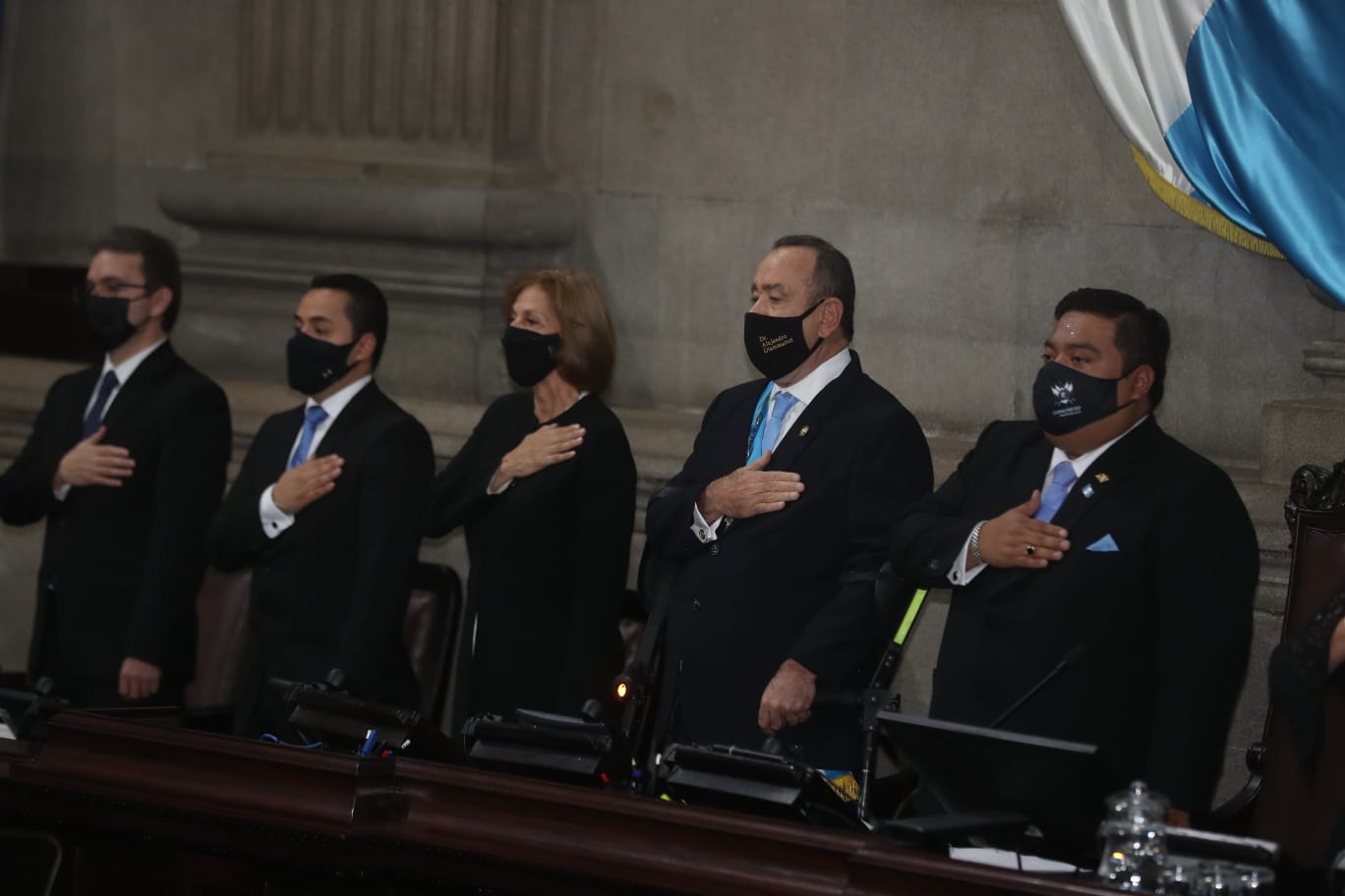El diputado oficialista Maynor Gabriel Mejía, Julio César Longo (FCN-Nación), Carlos Santiago Nájera (UNE), Aníbal Estuardo Rojas (VIVA) y Marvin Estuardo Alvarado, de Bienestar Nacional (Bien), ocuparán desde la primera a la quinta secretaría del Congreso.
