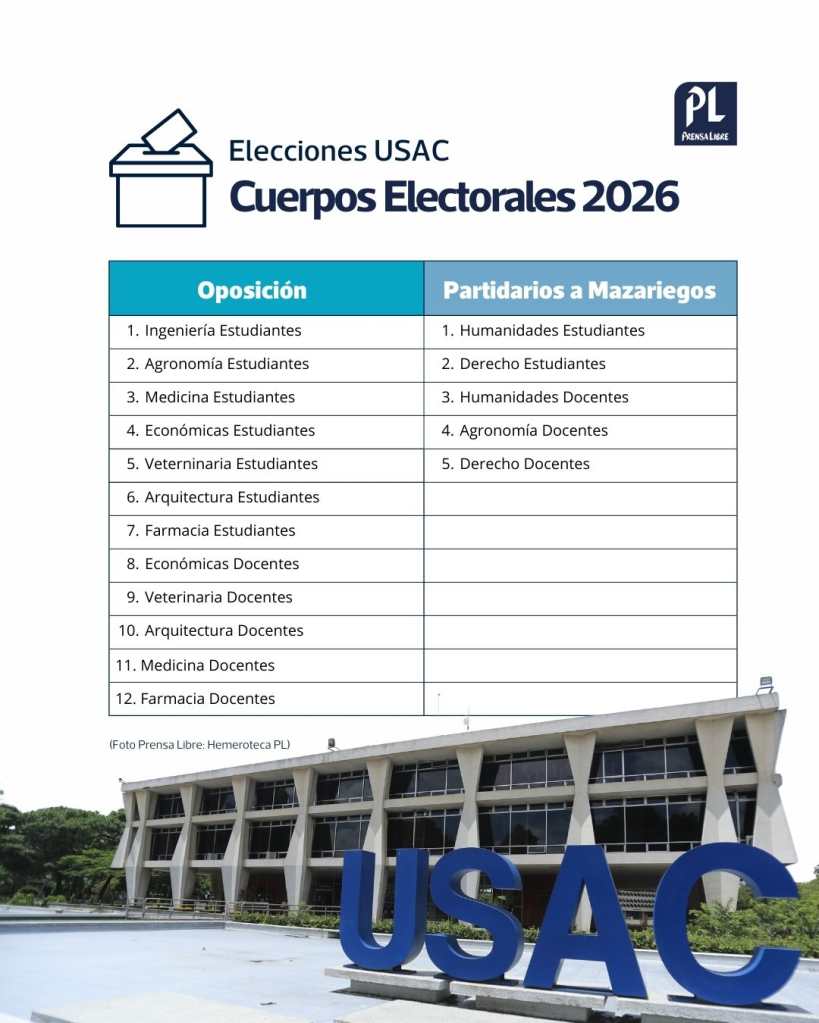 Con las últimas votaciones celebradas, la oposición al actual rector de la Universidad de San Carlos de Guatemala (Usac) elevó a 12 el número de cuerpos electorales obtenidos, mientras que cinco quedaron en manos de agrupaciones afines a la administración de Walter Mazariegos.