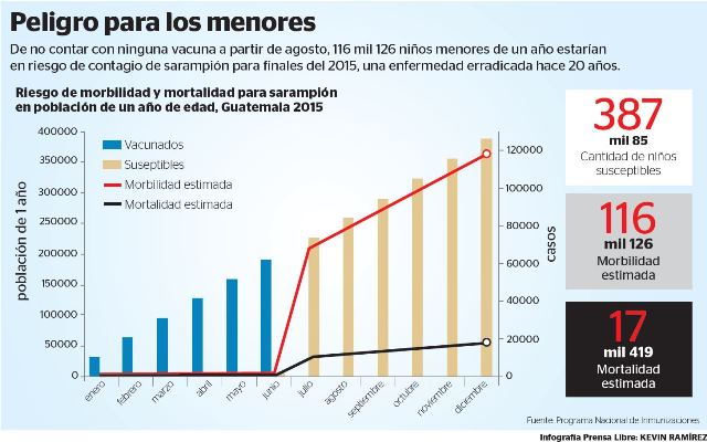 La proyección señala que para agosto se requieren Q138 millones 330 mil, con lo cual se podría pagar parte de la deuda que se tiene con la Oficina Panamericana de la Salud, que del 2014 es de Q67.9 millones, y comprar más dosis.