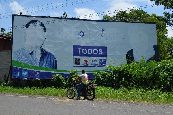 En el kilómetro 106 de la autopista del puerto Quetzal a Puerto San José, Escuintla, se encuentra una valla que promociona al diputado y presidente del Congreso, Arístides Crespo, y al alcalde de ese municipio, Jorge Rizzo, ambos del partido oficialista.