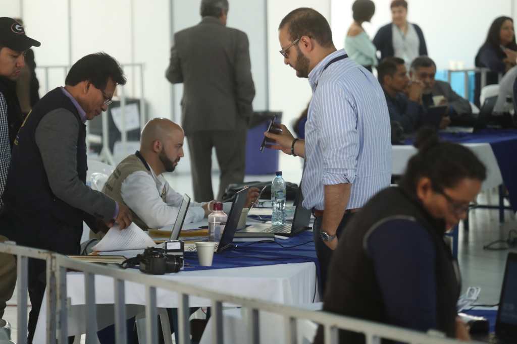 La revisión de las papeletas continúa en el Salón Guatemala del Parque de la Industria, el trabajo comenzó a las 8.30 horas y se ha realizado de forma ininterrumpida.