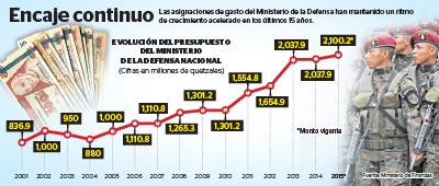 El monto que recibirán este año las filas castrenses representa el 3 por ciento del presupuesto general de ingresos y egresos del Estado, por Q70 mil 600 millones.
