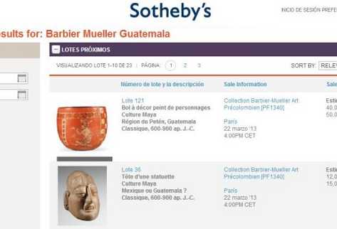 A mediados de febrero la página web de Casa de Subastas Sotheby’s incluyó en su catálogo las 13 piezas ubicadas, el reclamo está en la embajada de Guatemala en Francia, la base del reclamo es en base a la legislación que prohíbe la exportación, cualquier pieza en el exterior se encuentra en un situación de ilegalidad.