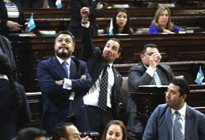 Hernández y Giordano bajaron de sus curules y arrancaron los carteles de protesta que tenía la bancada Encuentro por Guatemala, lo que generó el intercambio de palabras entre los diputados.