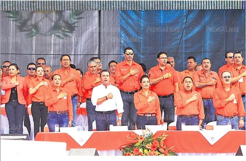 El delirio llegó, los dirigentes se notaron muy unidos esa mañana de septiembre. A tal punto que cuando el grupo de baile de Tavito Bam Bam salió a mostrar sus coreografías ante los miles de patriotas, Baldetti y los demás cabecillas naranjas se contagiaron del ritmo y bailaron.