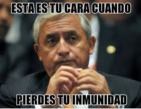 El castigo y la ironía de los guatemaltecos contra Otto Pérez Molina resalta en los memes que circulan en las redes, horas después de que el Congreso le retirara la inmunidad y ahora deba enfrentar a la justicia por el caso de corrupción en aduanas La Línea.