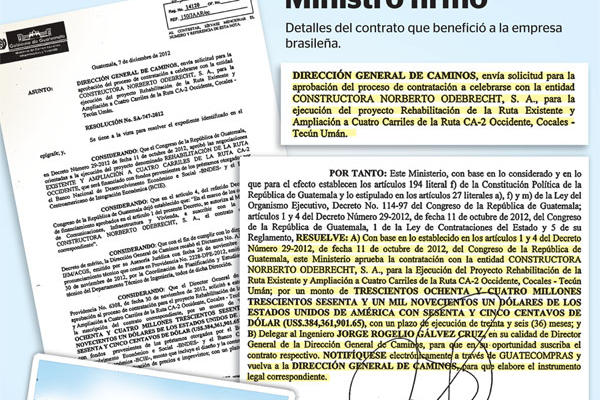 Odebrecht fue inscrita en el Registro Mercantil en febrero del 2011. Desde esa fecha a diciembre del 2012, o sea casi dos años después, obtuvo el primer y único contrato. Su capital inicial fue de Q100 mil. Desde el 2012 no ha vuelto a participar.