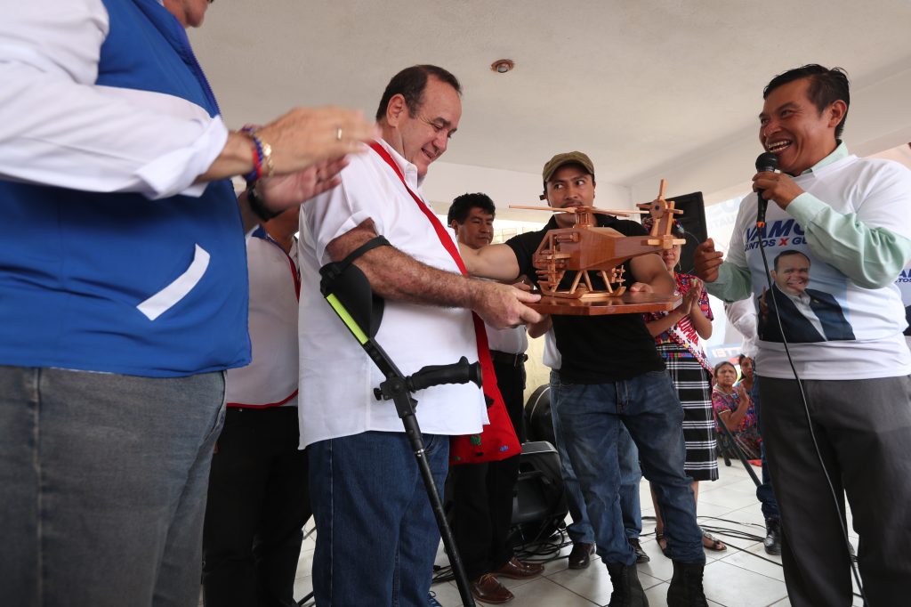 Durante su mitin, expresó: “A tres semanas de las elecciones, el partido UNE se encuentra desesperado, porque las encuestas evidencian que nosotros vamos caminando hacia la victoria. Tenemos los números de cómo hemos ido creciendo. Ya le dimos carevuelta (sic) al marcador; los llevamos como 5 a 0, y vamos a terminar 8 a 0”.