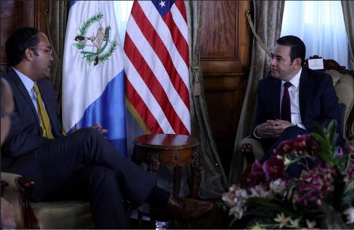 El presidente Jimmy Morales se reunió hoy con el republicano Will Hurd para buscar soluciones a la migración y la delincuencia regional.