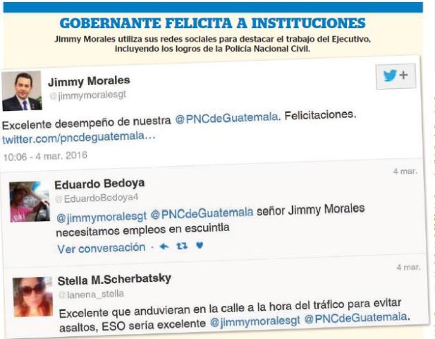 “Sinceramente, el pueblo de Guatemala espera mucho de usted Jimmy, no se han visto muchos cambios aún. El cambio empieza en nosotros pero su gobierno debe cumplir lo prometido”, escribió Luis Velásquez.