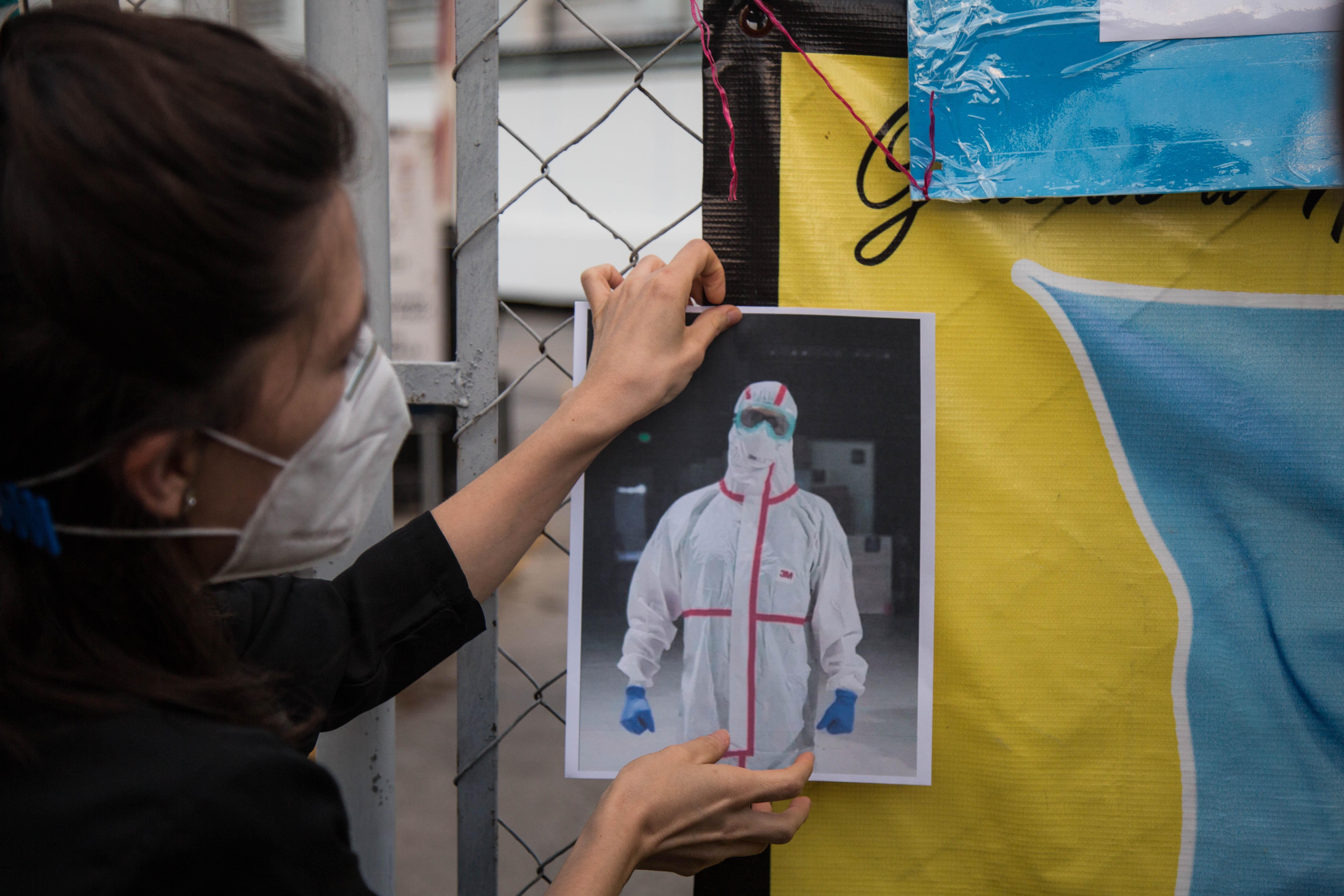 Sus colegas en el hospital le rindieron a Hernández Alonzo un pequeño homenaje el domingo en las afueras del mismo, con fotografías y flores para recordar su labor.