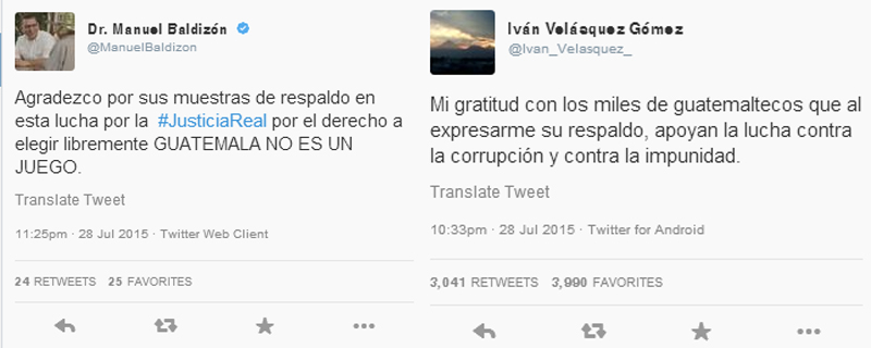 Por otra parte el comisionado de la Cicig, Iván Velásquez, fue la sensación de la noche en esta red social, al publicar una hora antes un tuit en donde agradecía a los guatemaltecos por el apoyo que le han brindado para luchar contra lacorrupción y la impunidad que reina en el país.