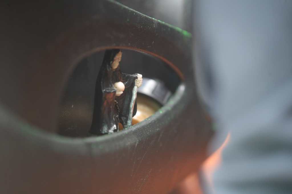 La PNC y el MP revisaron el vehículo hallado en la zona 3 y encontraron una imagen de la santa muerte en su interior.