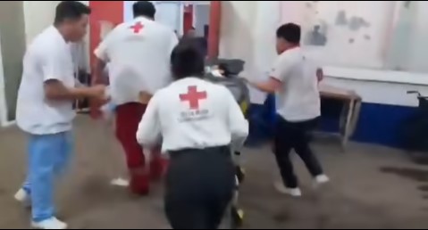 Socorristas de la Cruz Roja Guatemalteca asisten al niño herido mientras lo trasladan al Hospital Nacional de Retalhuleu. (Foto Prensa Libre: Captura de pantalla)