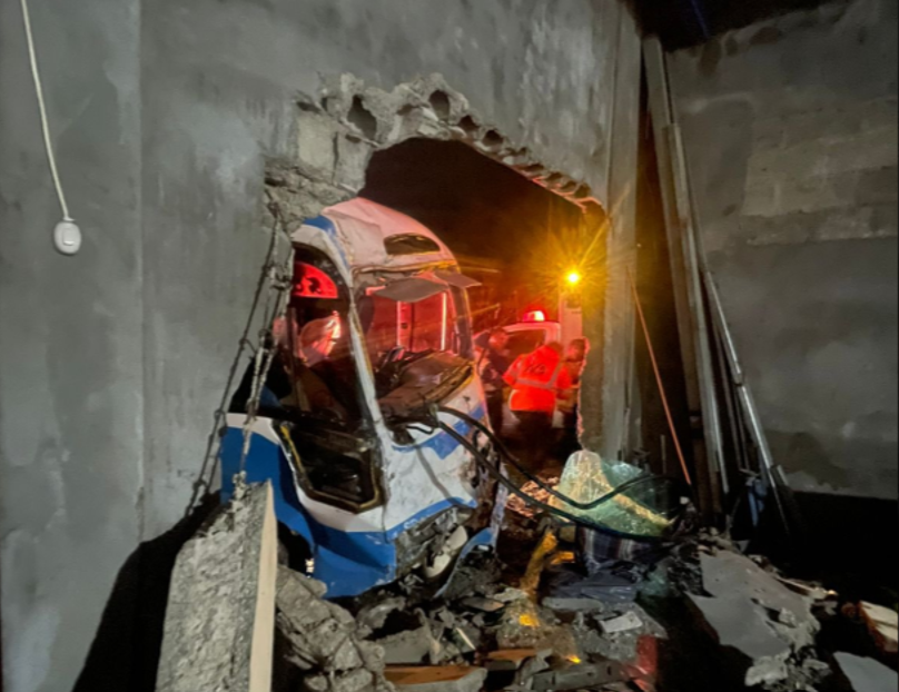 Debido a la fuerza del impacto, la unidad de transporte derribó parte de una pared de block.