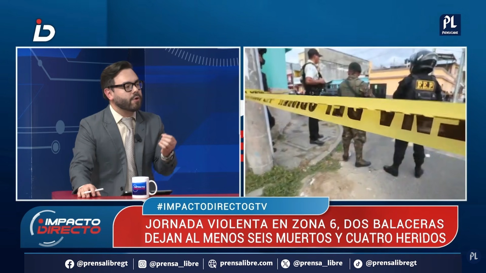 Durante el programa Impacto Directo, de Guatevisión, Nydia González, Herman Galindo y Roxana Sánchez analizaron los hechos ocurridos el 20 de abril de 2026 en la zona 6 capitalina, donde un ataque en una cevichería, ubicada en la 18 avenida y 8a calle, y otro incidente armado en las cercanías del mercado San Martín de Porres dejaron muertos, heridos y cuestionamientos sobre la seguridad.