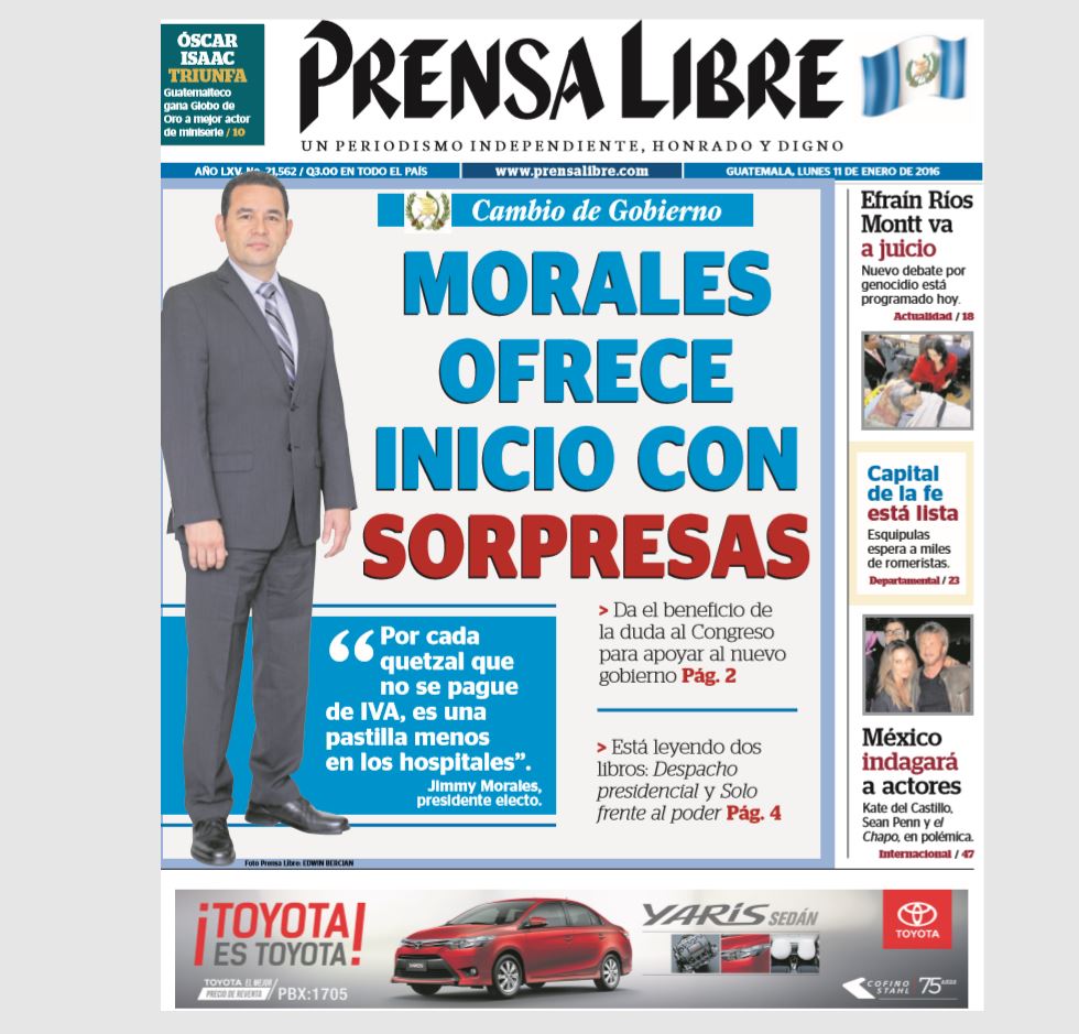 El 29 de noviembre del 2015 una riña entre dos grupos por un supuesto robo causó una masacre en la que murieron 17 reos en la Granja Canadá, Escuintla. Los prejuicios por la batalla contra el Sida era la noticia que se discutía en el país. Además, ese día renunció el fiscal José Morales, quien dirigió las pesquisas del caso de defraudación aduanera denominado La Línea. Además, se conocían detalles del caso Siekavizza.