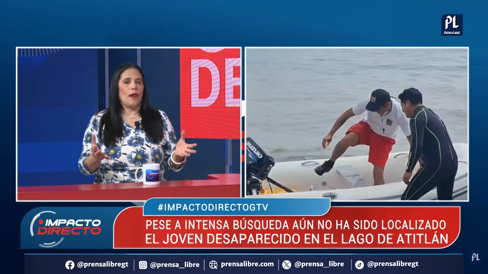 Durante el programa Impacto Directo, de Guatevisión, expertos y analistas abordaron la desaparición de Gessler Estuardo Palacios Recinos, de 28 años, en el lago de Atitlán, quien se lanzó sin chaleco salvavidas en la bahía San Buenaventura, en Panajachel, Sololá, hecho que mantiene operativos de búsqueda y abre cuestionamientos sobre seguridad y responsabilidades.