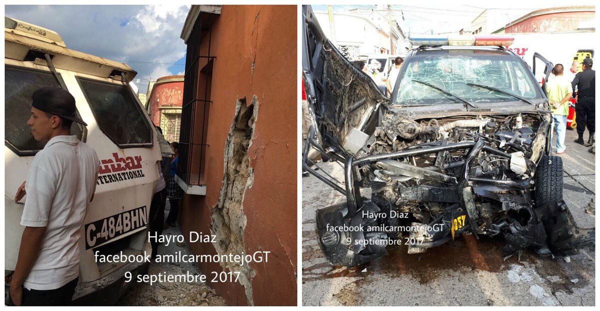 En la 10a. avenida A y 4a. calle, zona1, colisionaron un camión y un autopatrulla de la Policía Nacional Civil. Resultaron tres personas heridas que fueron trasladadas a un hospital.