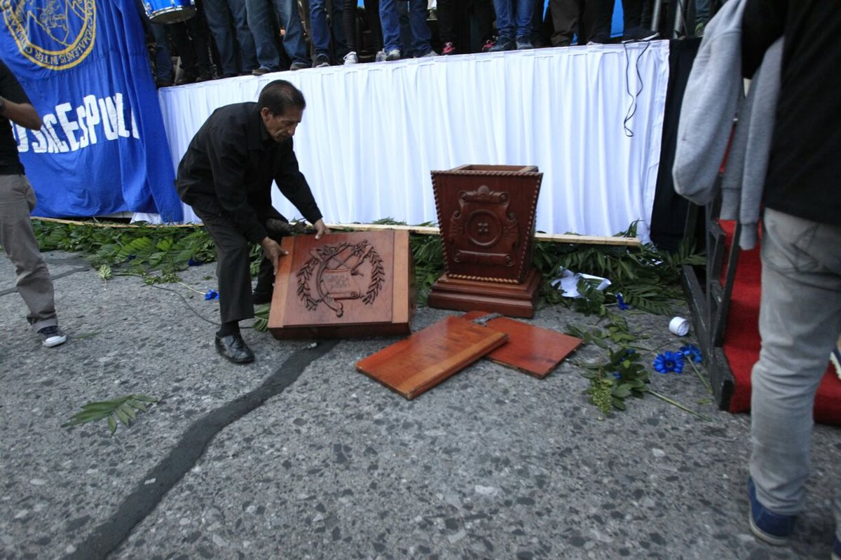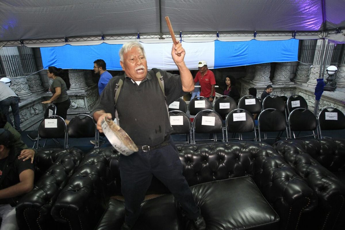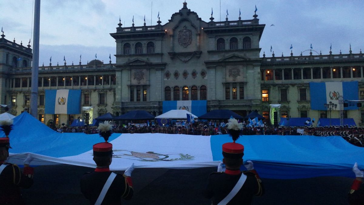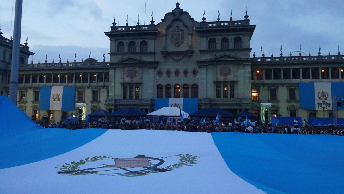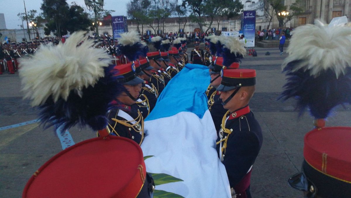Tras el retiro de los cadetes, los policías militares se retiraron y fue ahí donde los manifestantes ocuparon el espacio de la plaza central para repudiar la conducta de Jimmy Morales, quien recibía Q50 mil mensuales del Ejército por concepto de “bono extraordinario de responsabilidad”, y que según información oficial ya devolvió, y de los diputados, quienes el miércoles aprobaron cambios legales a favor de la corrupción e impunidad. También izaron una pequeña bandera de Guatemala, mientras gritaban las consignas contra los políticos corruptos.