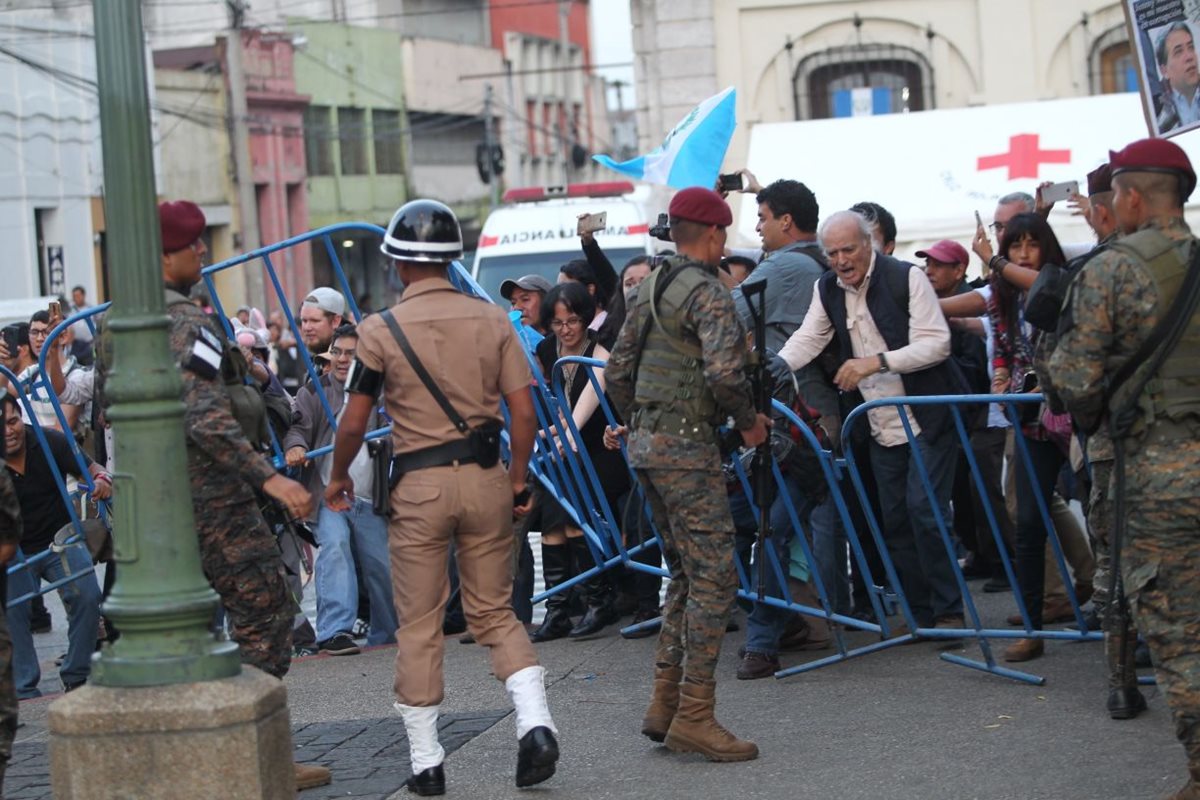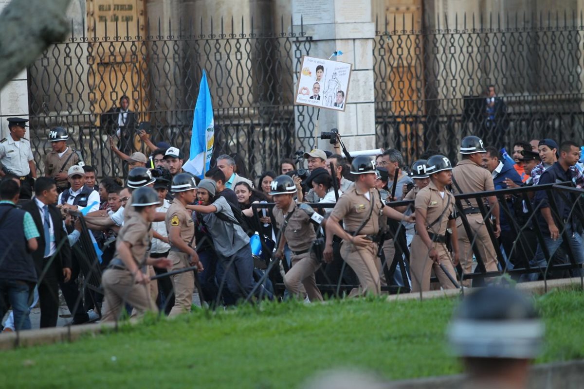 El mandatario no especificó a qué hechos se refería, pero el vocero del gobierno, Heinz Hiemman, afirmó esta noche a la cadena CNN que los manifestantes trataron de abrir una puerta del Palacio Nacional, votaron sillas y vallas de la tarima presidencial. Señaló a estudiantes de la Universidad de San Carlos de estar entre los participantes de la manifestación.