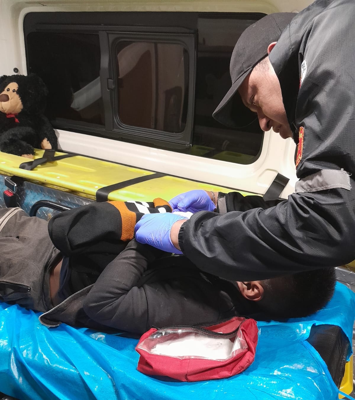 El menor de 13 años fue trasladado de emergencia al Hospital Roosevelt. (Foto Prensa Libre: Bomberos Voluntarios)
