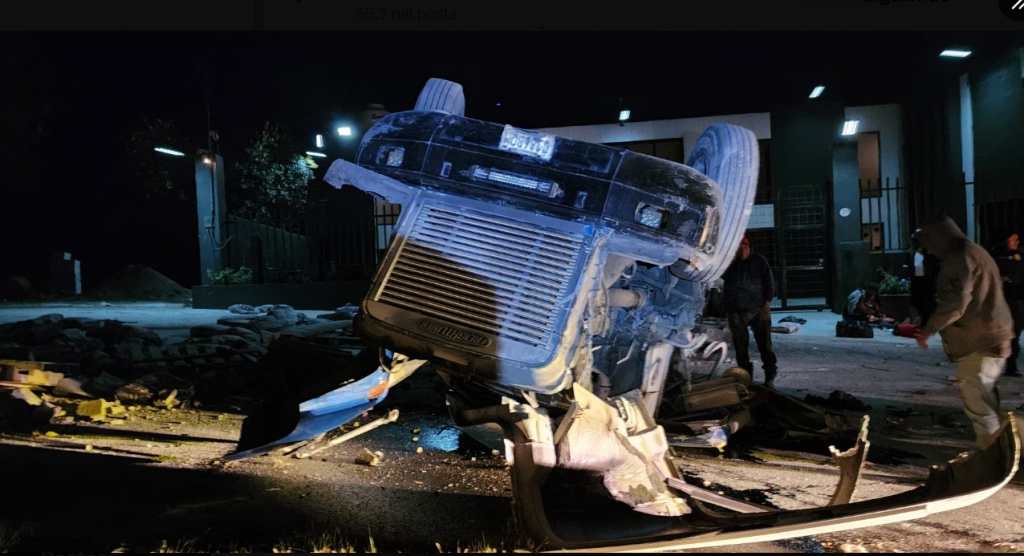 Entre tanto, un camión cargado con material volcó anoche en el kilómetro 182 de la ruta Interamericana, informaron los Bomberos Voluntarios.