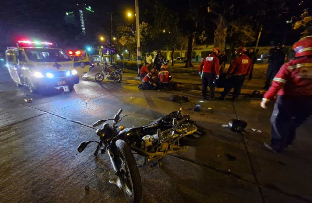 En la avenida reforma y 16 calle se reportó un fuerte accidente entre dos motocicletas, informaron los Bomberos Municipales.