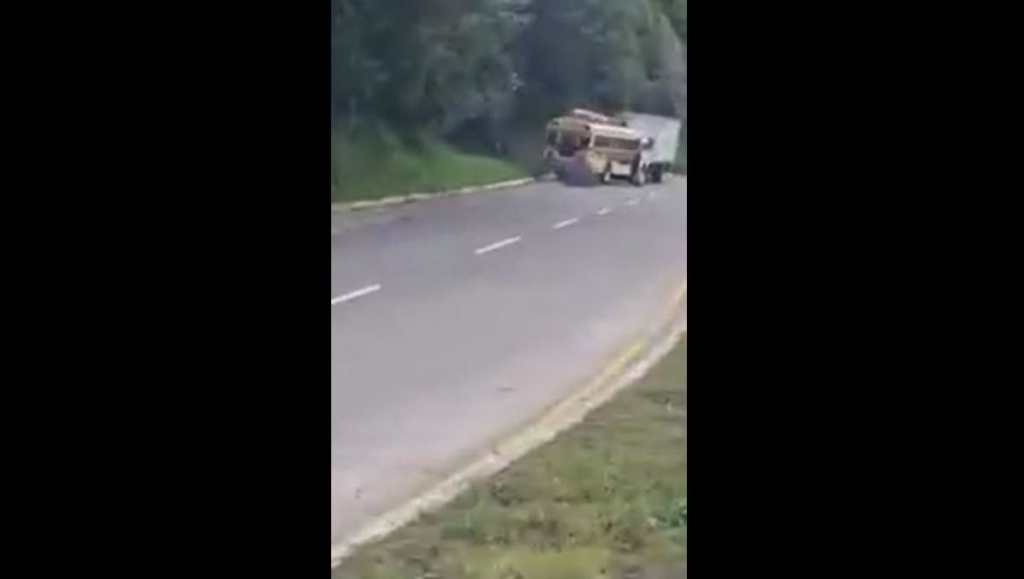 En un video compartido por Región Más Noticias se observa cuando el bus circula a excesiva velocidad y pierde el control.