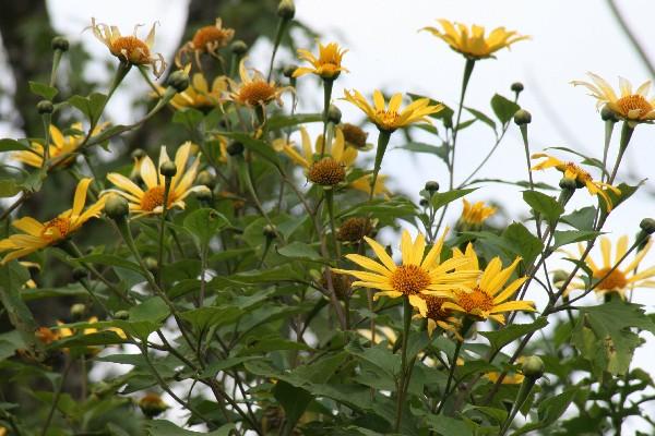 Además de este árbol, en los cerros pueden hallarse fácilmente las flores silvestres Ax y Q’il —ambos en idioma q’eqchi’—, que además son medicinales; así como el girasol silvestre, que coadyuva en que el amarillo sea más intenso durante esta época.