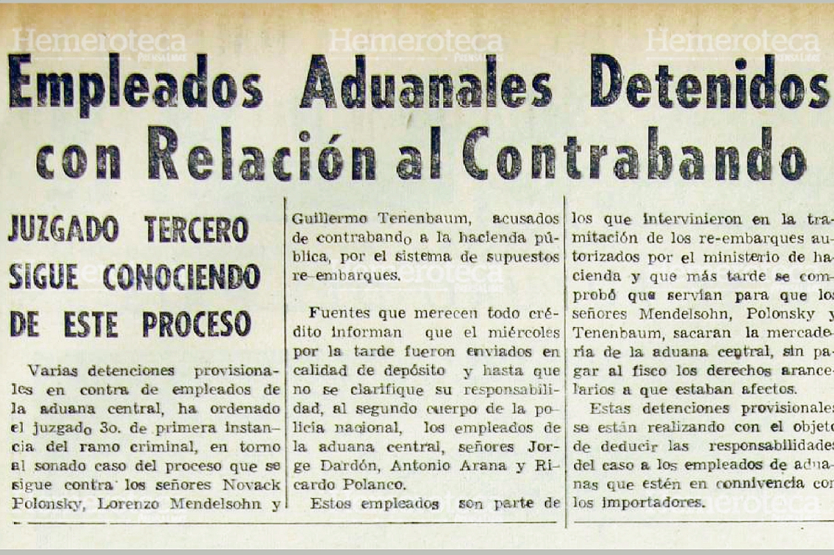 El 7 de mayo de 1960 trascendió la captura de varios empleados de la Aduana Central, acusados de contrabando.