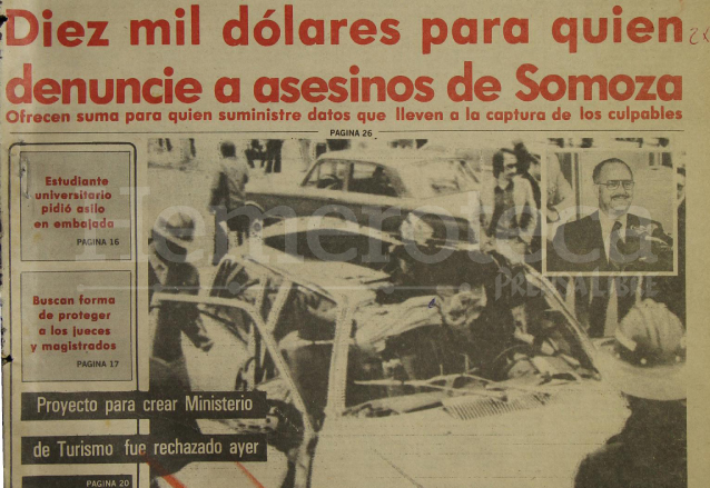 El expresidente Somoza circulaba en el centro de la capital paraguaya cuando terroristas no identificados hicieron volar su automóvil con un proyectil de bazuca al mismo tiempo que lo acribillaban con fuego de metralletas. Los atacantes huyeron y también ultimaron a un hombre que acompañaba a Somoza y a su chofer, César Gallardo, que conducía el Mercedes Benz blanco.