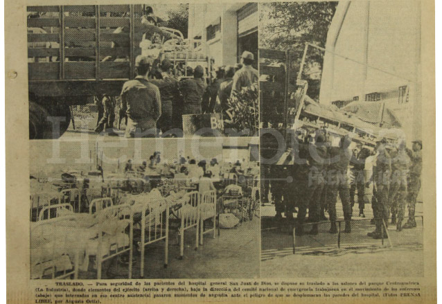 Las primeras horas después del terremoto de 1976 los viejos patios del hospital se vieron abarrotados de camillas y pacientes, debido a la destrucción de las salas de atención.