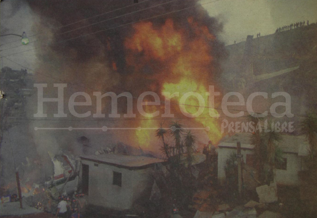Byron González y Jorge Antonio López, vecinos de la colonia, expresaron que estaban cerca del lugar al momento del percance y vieron cuando la nave vuelta en llamas caía sobre las viviendas.