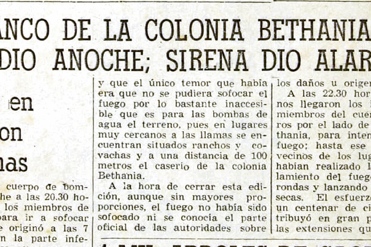 El área quemada por el incendio tenía proporciones de más o menos unas 5 a 6 manzanas, aunque en lo oscuro de la noche no se podía apreciar los daños causados en objetos, algún rancho o personas. Sin embargo los agentes de la guardia civil insistieron en que no se habían reportado daños personales y que el único temor que había era que no se pudiera sofocar el fuego por lo bastante inaccesible que es para las bombas de agua el terreno, pues en lugares muy cercanos a las llamas se encuentran situados ranchos y covachas y a una distancia de 100 metros el caserío de la colonia Bethania.