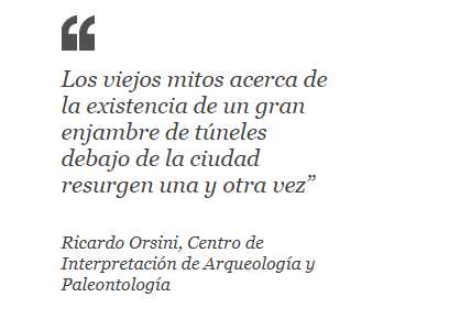 “Los viejos mitos acerca de la existencia de un gran enjambre de túneles debajo de la ciudad resurgen una y otra vez”, dice Ricardo Orsini, coordinador del Centro de Interpretación de Arqueología y Paleontología de la ciudad.
