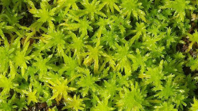 El musgo de turbera es una planta no vascular (no tiene raíces) que prospera sobre todo en climas húmedos y fríos.