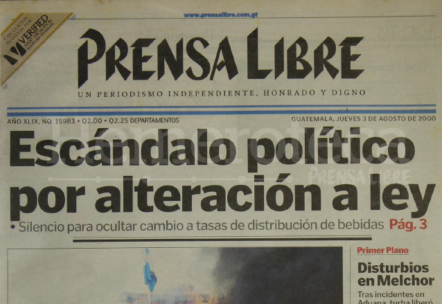 Prensa Libre hace pública la grabación de la sesión que las periodistas grabaron el 27 de junio 2000, lo cual puso en evidencia que sí hubo alteración de dicha ley, por lo cual el fiscal asignado acudió al Congreso con el fin de recabar información y así poder inicial la investigación del escándalo Guategate que habrían solicitado ese mismo día aproximadamente 30 diputados del Frente Repúblicano Guatemalteca FRG, para cambiar el decreto 43-2000.